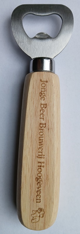 Solide uitgevoerde bedrukte flessenopener van FSC hout.